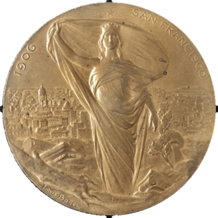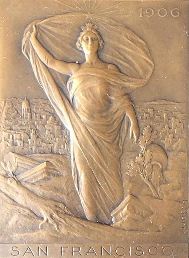 And then In 1915, Bottée produced a bronze placard medal in honor San Francisco’s rebuilding as well as the Exposition.