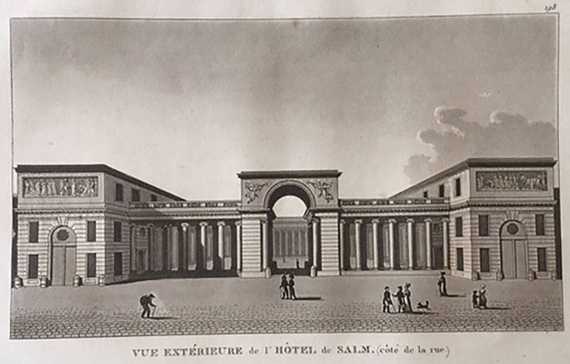 1839 gravure print – VUE EXTÉRIEURE de l’HÔTEL de SALM, côte de la rue