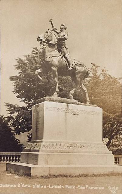 Real Photo postcard , ca 1927 – Jeanne D’Arc statue, Lincoln Park San Francisco
