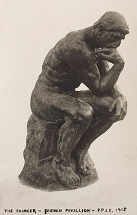 THE THINKER EXHIBIT, COURT OF THE FRENCH PAVILION — It is a satisfaction that at the entrance to the pavilion of France should stand this great work of the master sculptor of our age. This is a replica of “Le Penseur“ (The Thinker), placed before the doors of the pantheon in Paris ...