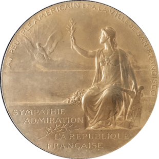 On one side: “To the people in City of San Francisco. Sympathy and Admiration [from] The French Republic”