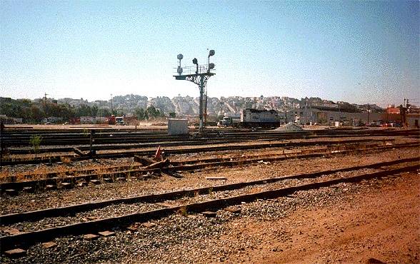 Potrero Hill as seen from Townsend in the middle of the Caltrain railyards that were once under water in Mission Bay.