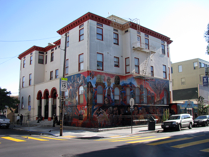 St. Peter's Rectory, home to one of San Francisco's most active Catholic parishes. At the turn of the 20th century, the parish priest was Father Peter Yorke, an Irish nationalist and strong supporter of the labor movement, who gained fame during the 1901 waterfront strike. During the Reagan Administration local parishes, including St. Peter's, became sanctuaries for refugees from the wars in Nicaragua and El Salvador, and St. Peter's had this mural painted during that time.