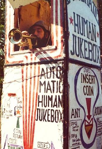 The immortal Grimes Poznikoff, the Human Jukebox. Fisherman's Wharf circa 1978