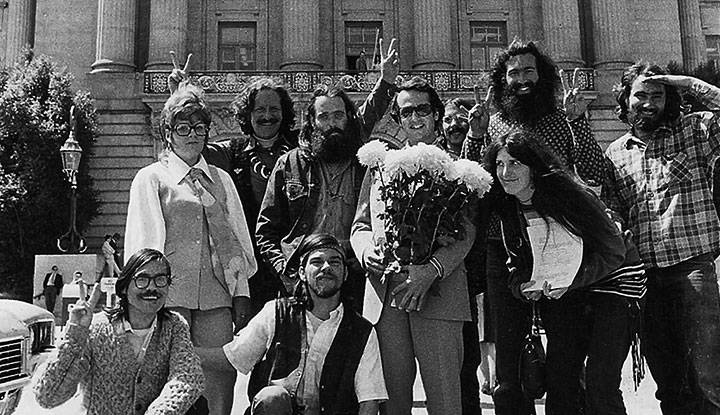 Starting at minute 10:40 of this KPFA September 9, 1972 news show, a protest of street artists begins.