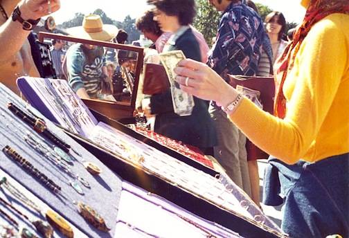 Street artists at the LA Fashion & Jewelry trade show...trying to jump into wholesaling. Circa 1976