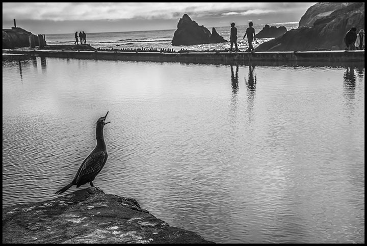 The sidewalks next to the Palace, and up and down Market Street, have also seen their share of people spreading out their cardboard and a sleeping bag beneath the visqueen, and calling it home. The city authorities, especially these days, move them from away from the Palace, where they fear their visibility to tourists. Maybe some sidewalk sleepers find a place further out, whether near the Sutro Baths or in another hidden corner. But keeping people invisible to tourists echoes keeping people out of the front of the house in hotels and away from reveling bath patrons.