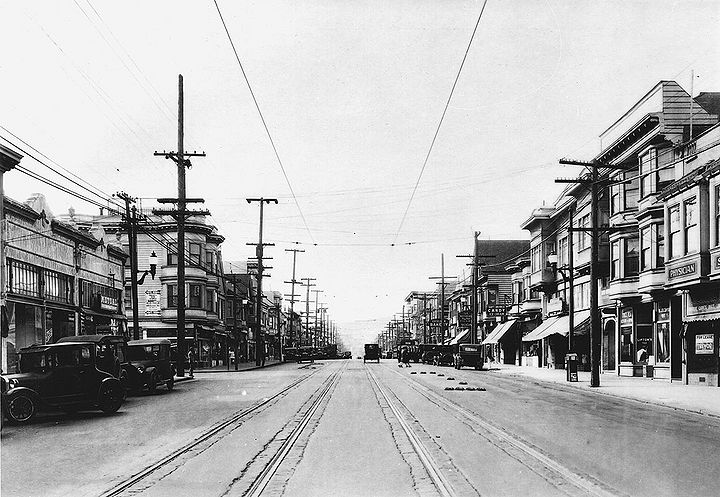Early days on the Excelsior's exotic-named streets. Here we look northward along Paris from Italy Street in the late 1920s.