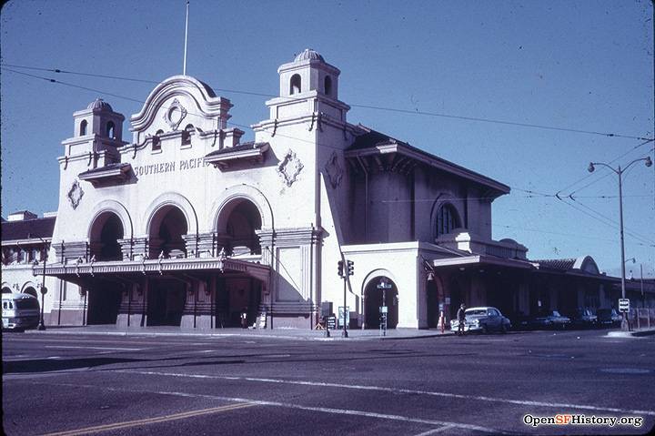The old Spanish-revival style Southern Pacific Depot served San Francisco for many decades, still standing in this August 1, 1973 photo.
