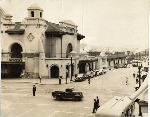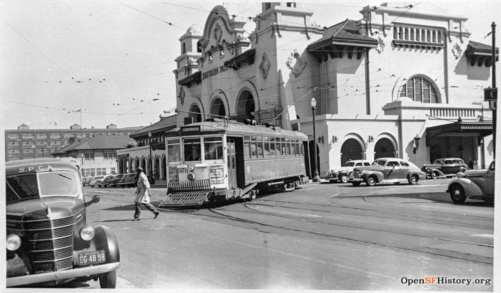 3rd and Townsend, 1941, streetcar leaving terminal to go north towards downtown.