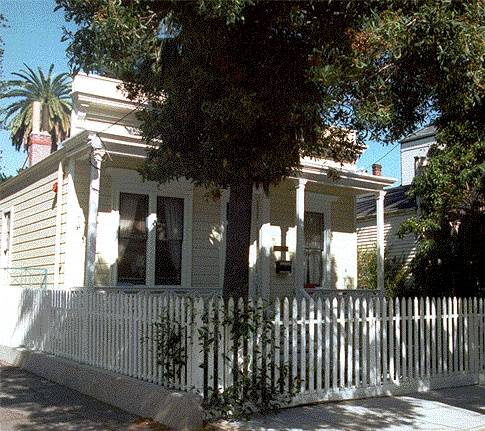 Two very old houses that have maintained their original appearance can be seen side-by-side at 220 and 214 Dolores Street. The "Tanforan Cottages," so called because members of the family of Toribio Tanforan occupied them from 1896 to 1945, are simple frame structures with modified late Classical Revival façades.