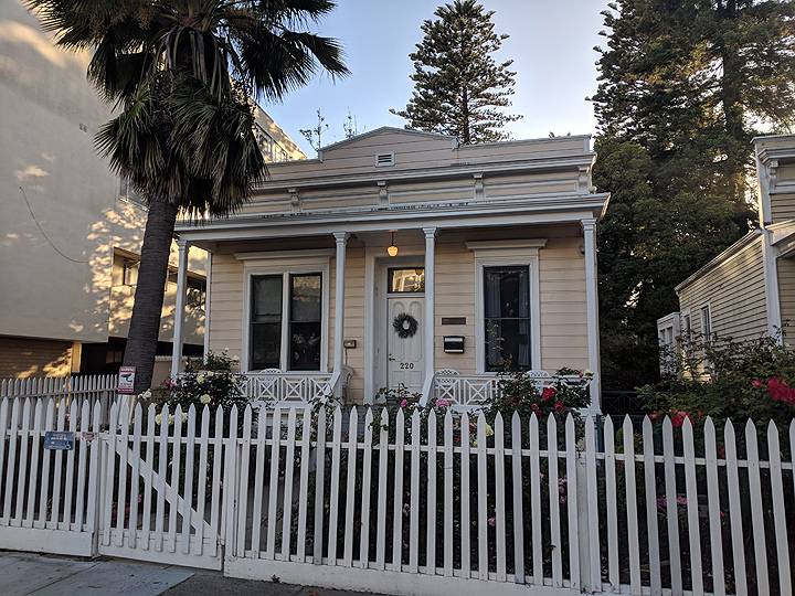 Though very nearly identical in appearance, they were not constructed at the same time; 214 Dolores is said to have been built a little before 1853, 220 not long after that date. This dating is questionable, though, as the first substantiated date is 1866, when Revilo Wells, owner of 214, had water piped in.