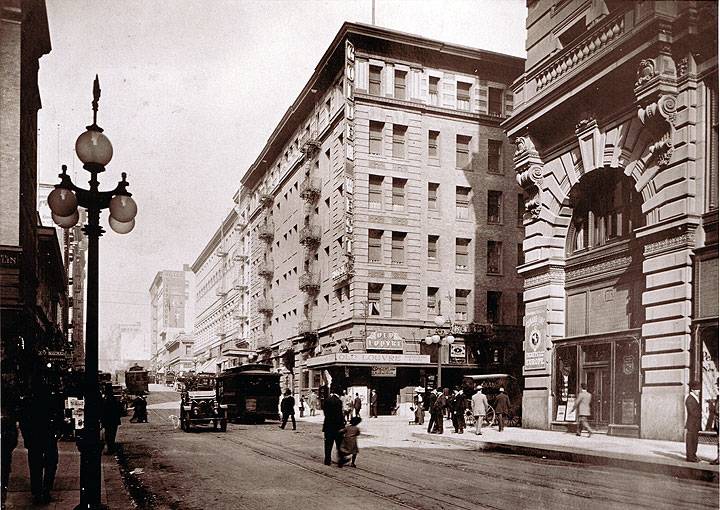 Techau Tavern stood on the site of the present bank at the southwest corner of Powell and Eddy; the Portola Louvre, across the street. Around the corner at 35 Ellis Street was the Heidleberg Inn, and at 168 O’Farrell, the famous old Tait-Zinkand cabaret, across from the Orpheum Theater where vaudeville was born.