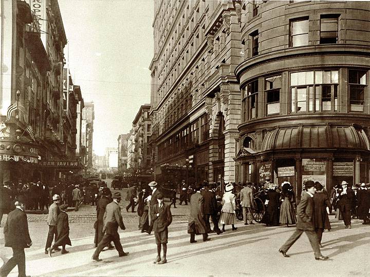 Fabulous Tessie Wall kept her red plush and gilt bagnio on the southwest corner of Powell and O’Farrell—Tessie Wall, who reigned before Prohibition as “Queen of the Tenderloin,” whose answer to her husband, gambler Frank Daroux, when he asked her to move to a suburban home in San Mateo is still quoted: “San Mateo! Why I’d rather be an electric light pole on Powell Stret than own all of the county.” Mason Street, one block west of Powell, was the “White Way,” sparkling with the lights of Kelly’s place, Jimmy Stacks’ cabaret, the later Poodle Dog, and Billy Lyons’ saloon, “the Bucket of Blood.”