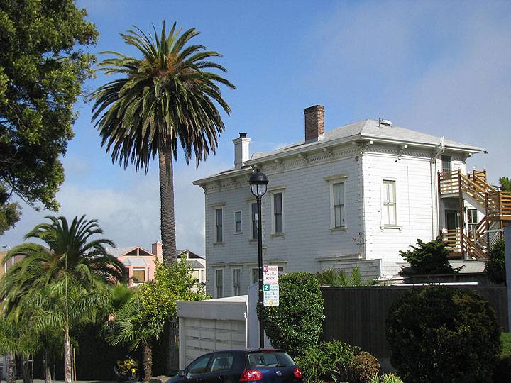 At the time of Captain Adams' purchase of property, the bay water was only one block from the house. This was the area of Mariposa and Eighteenth, and must have been a factor in the selection of the southwest corner of Pennsylvania Street intersection for his home. The structure is still standing today, and is quite impressive in its stately size and surrounding grounds. On top of the house the remains of the Captain's Walk can still be seen. Many of the old homes of San Francisco had an area on top of the roof for wives to watch for returning ships.