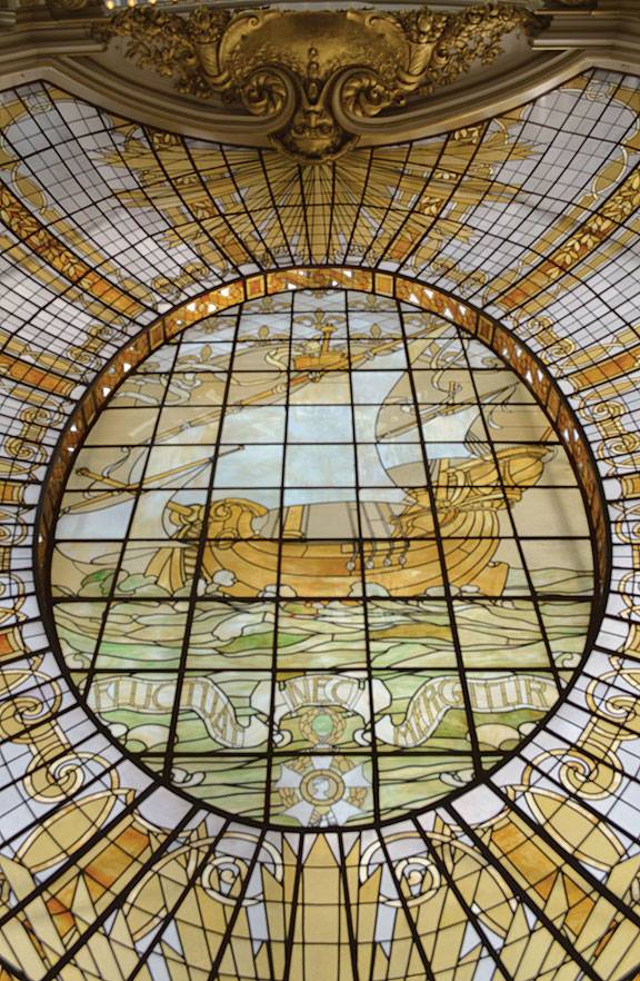 Thanks to Philip Johnson, when you walk through the doors of Neiman Marcus on Geary and Stockton today, looking upward to the stained glass dome you will find the motto and inspiration for the old Ville de Paris, “Fluctuat nec Mergitur.” It floats but never sinks.