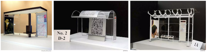 Through a series of purchases and absorptions throughout the late 1990s and early 2000s, Gannett’s Outdoor division became CBS Outdoor. The contract with the City carried over and was set to expire at the end of 2007, having been extended to 20 years. That May, bidding began for the new transit shelter contract. Each bidder—Cemusa, Clear Channel Outdoor, and CBS Outdoor and JCDecaux bidding as a pair—sent designs and prototypes to Muni, adding to 24 total schemes by various architects (17).