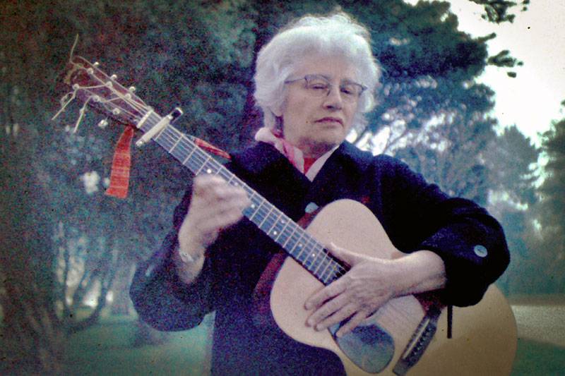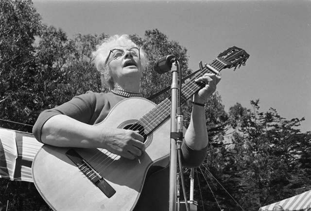 Malvina Reynolds serenading protesters defending the Panhandle from freeway plans in 1966.