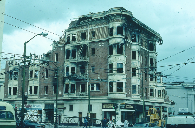 Gartland Apartments, Valencia and 16th Street, 1958. Burned by landlord arson, 1975.