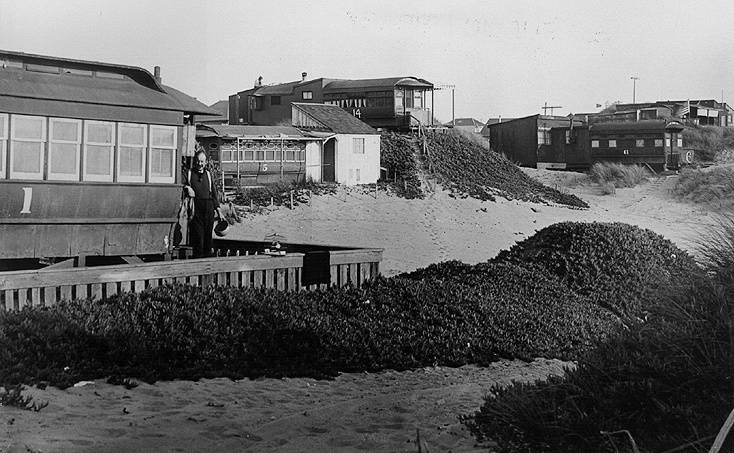 The last horse-drawn streetcar in San Francisco rolled up Market Street in 1913, but mostly horsecars had been abandoned by the turn of the century. In San Francisco an aggressive capitalist consolidator and modernizer named Patrick Calhoun purchased every independent streetcar line in 1901 and merged them into his United Railroads. An early project was to make uniform the rolling stock and track gauges, which led to the abandonment of the last four miles of horsecars that had been the backbone of transportation just a generation earlier. The cars were already being sold in the mid-1890s to anyone who wanted one, $20 with seats, and $10 without. Famously a number of them ended up in the sand dunes near the beach just south of Golden Gate Park in an odd village that came to be known as Carville by the Sea.