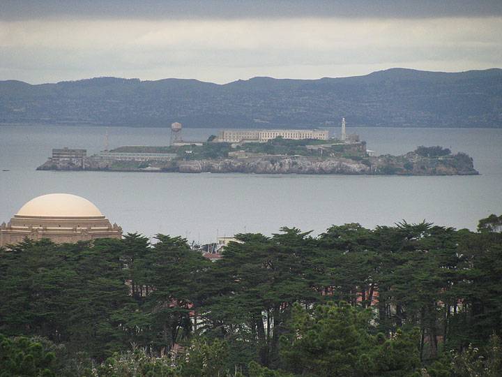 Palace of Fine Arts roof punctuates view from Inspiration Point northeasterly towards Alcatraz and beyond.
