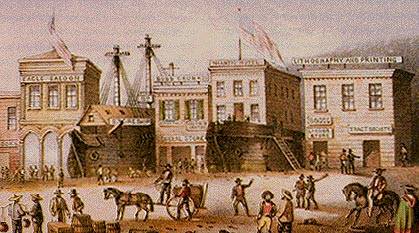 The Apollo (left) and Niantic on San Francisco's 1850 waterfront.