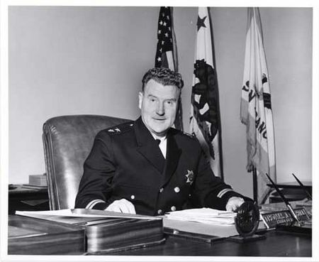 “The chief, a big, thin lipped man with a crown of closely cropped red curls, was known as a tough but fair cop.” Cahill was chief of police during San Francisco’s most tumultuous time, as the hippie movement, civil rights movement, the Cold War, and the Vietnam War all occurred during his twelve-year tenure. His son John remembers simply accepting that his father was going to work 24/7 as chief of police. “He would have a drink with my mom, they would talk in the kitchen, then he would go shave, and put on a clean white shirt and tie. He’d have dinner with us, and about seven o’clock his driver would take him to whatever meeting and whatnot. He wouldn’t be back till ten or eleven at night, and that was pretty consistent.” While serving as chief, Cahill established the first tactical crime prevention squad, the first community relations office, the canine unit, and the police cadet program. John Cahill recalled that, “he told every graduating cadet class that if they did good police work, and were honest policemen, he had their back. But if they crossed the line, and became dishonest, then he said, 'I will be the one who escorts you to San Quentin, and I will be the one who closes the door on you. And that is a guarantee.'”