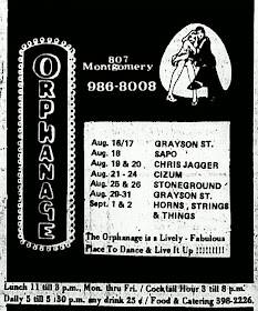 There was a great club that had authentic belly dancers and on a side street was The Orphanage. A music club. I was the girl taking your money at the door and explaining “sorry, you’re not on the guest list” at the Orphanage. (People love to be offended by this part of my story but it was the times and no one ever wants to admit that things were this way.)