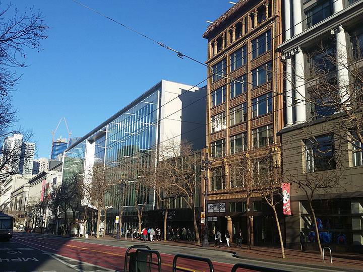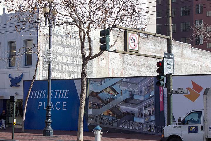 In recent years, San Francisco has adopted laws and strict zoning codes against the proliferation of the kinds of chain stores that will crowd Market Street Place. Planners have for generations envisioned Market Street as the hub of all city public transportation with BART and MUNI and miles of new bicycle lanes. Yet even as a car-free section of Market Street comes closer to reality, Market Street Place—if it’s ever built —will feature a massive underground parking garage for private automobiles. Meanwhile, the owners of the Westfield San Francisco Shopping Center one block away have publicly considered opening a police substation inside the mall to curb the massive amount of shoplifting, and the mayor announces the street will be a dot com corridor.