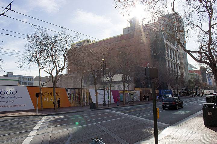 Former site of 949 Market Street before construction on a new mall had fully begun, January 2014.