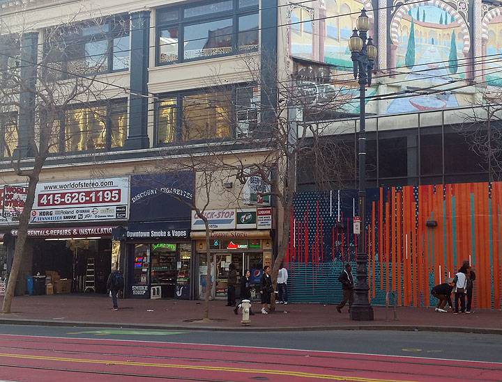 Another out-of-state firm, Cypress Equities, bought the properties in 2012 and announced that work would continue on the mall—now to be renamed Market Street Place. The developers cheerfully announced they were courting JC Penney’s to anchor the project—even though the mid-level retailer was actually at that time closing store locations across the country. Soon, negotiations with JC Penney fell through, and Nordstrom Rack had chosen another site. In 2013, the St. Francis Theater, the 949 Market squat, and the other contiguous properties were demolished anyway. A groundbreaking ceremony for Market Street Place was held in November 2014 with Mayor Ed Lee on hand to toss the first shovel of dirt. As of this writing, the plot is still a hole in the ground, and Cypress is still in search of an anchor tenant for the mall. The firm’s CEO told an interviewer the firm planned “to wait to get it right.”