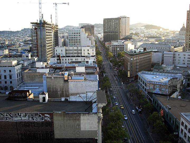 Market Street cutting through the city, as seen from Twin Peaks, 2007.