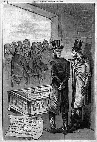 "Would it not be splendid if we could use the Chinese as 'Voting Cattle' as we do the niggers in the Southern states?," April 25, 1879