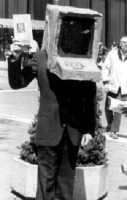 Protesting the "Office Automaton Conference" in 1982 at San Francisco's Moscone Convention Center.
