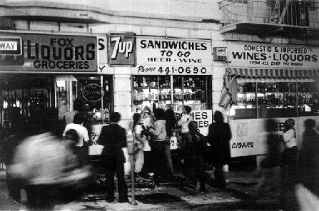 After a few more hours the police had retaken the streets. A squad of several dozen cops rode over to the Castro and staged a retaliatory riot, attacking the Elephant Walk Bar at 18th and Castro, smashing everything. They even pulled people out of surrounding doorways and bars. I heard of one man getting his leg severely bruised when they burst in on him at his kitchen table.
