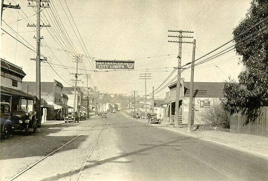 Southerly view of Bayshore Boulevard and Alemany Boulevard intersection, c. 1935