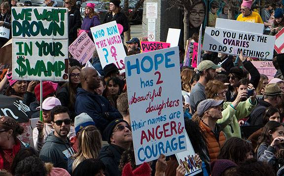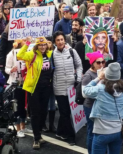 I am surprised and glad I went to the Women’s Marches in Oakland and San Francisco on Saturday, the day after Trump was inaugurated. The Friday night march in San Francisco was also worth going to, though more predictable and less inspiring than the surprisingly gigantic turnouts for the Women’s March, not just here in the Bay Area but across the U.S.