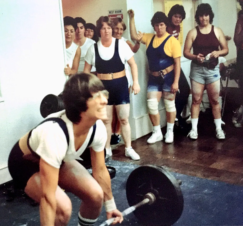 My journey into weightlifting began in San Francisco in the mid-1970s, when I was working construction and needed to get stronger. I don’t remember exactly how the idea came to me—women simply didn’t lift weights back then—but I started going to the gym with my friend Jill for moral support. At first, we trained at the Sports Palace in the Mission, which had been an all-men gym. They didn’t even have a women’s changing room or bathroom. The owner tacked up a sheet of plywood in the corner so we could change behind it.