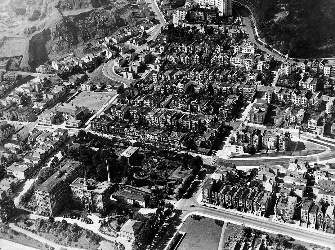 The principle forces at work in the Haight-Ashbury, other than the daily lives of the working class, have been the major health institutions that literally define the perimeter of the neighborhood: The University of California at San Francisco, situated on the southwest corner; St. Mary's Hospital on the northwest corner; Harkness Hospital (or Southern Pacific Hospital) on the northeast corner; and St. Joseph's, just behind Buena Vista Park on what would be the southeast corner.