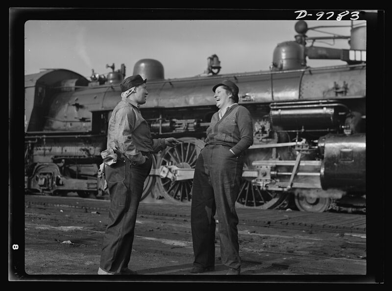[[Image:Ann Rosener Women railroad workers take over the cars and maintenance of freight and passenger trains in the Southern Pacific Company yards at San Francisco service-pnp-fsa-8b09000-8b09900-8b09911v.jpg|800px]] | |||