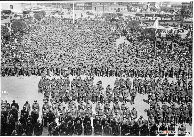 Troops mass in Civic Center, May 14, 1918.