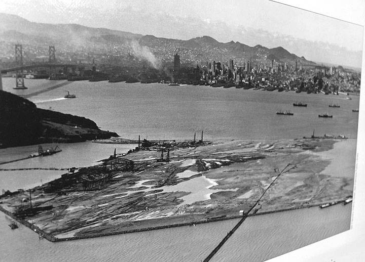 Treasure Island was a major government development effort from the beginning, seen here in the mid-1930s as it was emerging from the shallow baylands north of Yerba Buena Island with extensive dumping and diking. It's first use was for the 1939-40 Golden Gate International Exposition.