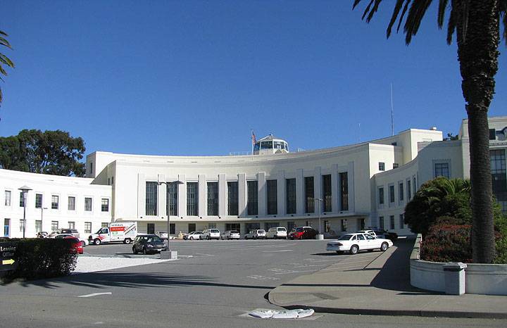 Original airport terminal building, another of the early uses planned for Treasure Island. PanAm's famous Clippers would circle and land in the bay, and then taxi in to the adjacent Clipper Cove, below.