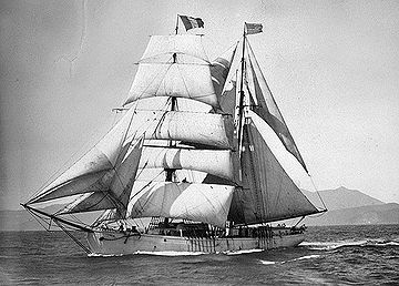 John D. Spreckels. A handsome brigantine of 267 tons, was launched at the head of Mission Creek in 1880. She was built by Matthew Turner for Spreckels’ Hawaiian sugar trade. Like most of the vessels in that run, she carried passengers and was heavily rigged, including topmast stunsails which can been seen extended like giant wings in this picture.