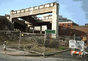 Freeway hides historic ferry building in this 1985 photo until its demolition in 1990.