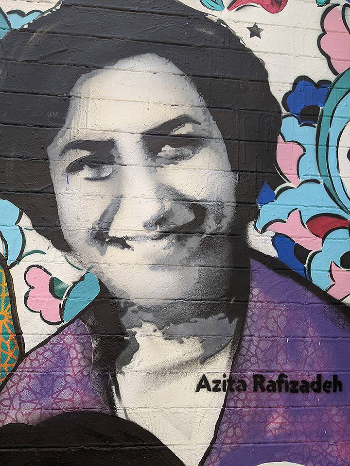 This mural was part of a month long project called "In Honor Of", bringing attention to female prisoners of conscience in Iran. The project started in the beginning of October 2019 with a mural unveiling and celebration in Clarion Alley, and included events such as film screenings and discussions. By the last event, three of the women depicted were released.
