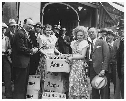 Happy Days Are Here Again, proclaims Acme Beer truck in 1933, after the end of Prohibition.