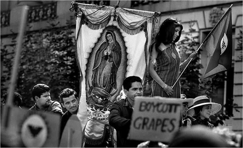 Though San Francisco may be a long ways off from the hot and dusty fields of Coachella and Delano, the City by the Bay has always had a close and congenial relationship with Cesar Chavez and the United Farmworkers Union. Cesar came to the City often, where he could rely upon a strong supportive community of Latinos, radicals, unionists, and other progressives. When the grape strike, and then the lettuce strike was in full swing, and he saw the violence perpetrated on the striking workers, he introduced what he called "the double whammy" of the strike and boycott weapons. To complement the strike actions in the fields, the UFW embarked on a major effort in the cities to enlist consumers in the fight, by refusing to buy scab grapes and lettuce. The UFW could count on San Francisco consumers to help. For many years UFW pickets could be found obstructing traffic at large retailers of scab produce, such as Safeway Stores and Lucky Stores. San Francisco produce terminal workers would often refuse to unload scab produce as well. In addition, the city's growing network of community co-ops would support the union by selling UFW-picked produce. In the 1970s, the Farmworkers had a collective household of full-time urban organizers in the nunnery located in St. Pauls church at 29th and Noe (coincidentally, the same church featured in the Whoopi Goldberg movie "Sister Act.")
