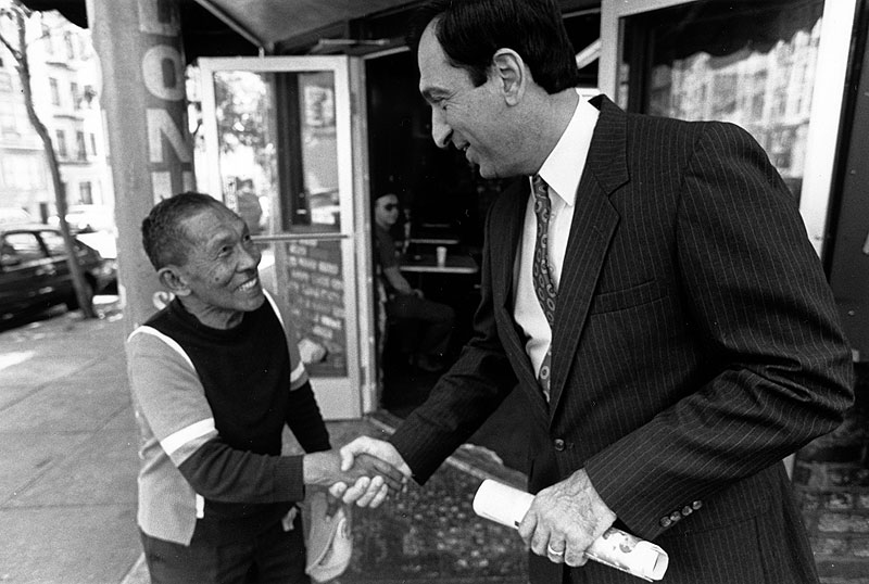 Art Agnos shaking hands in the Tenderloin during his mayoral campaign in 1987.