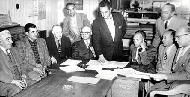 These are the produce market owners who tried to fight the city's redevelopment plans for the site of the market. Joe Carcione is the young man 4th from the left, who later became TV's Greengrocer.